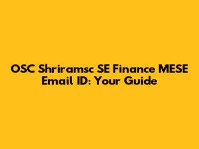 OSC Shriramsc SE Finance MESE Email ID: Your Guide