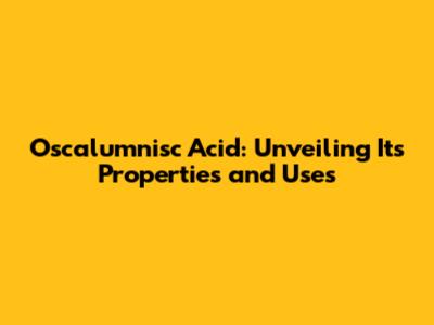 Oscalumnisc Acid: Unveiling Its Properties And Uses
