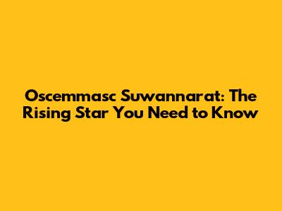 Oscemmasc Suwannarat: The Rising Star You Need To Know