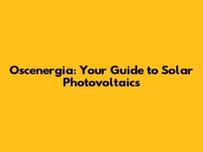 Oscenergia: Your Guide To Solar Photovoltaics