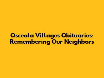 Osceola Villages Obituaries: Your Community News Source