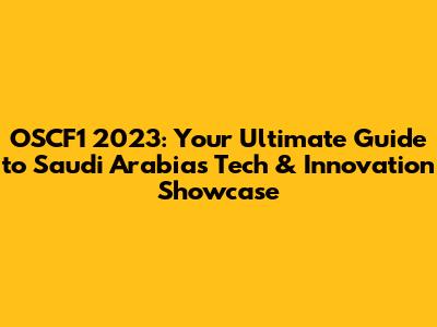 OSCF1 2023: Your Ultimate Guide To Saudi Arabia's Tech & Innovation Showcase