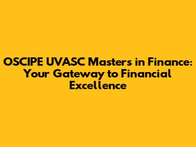 OSCIPE UVASC Masters In Finance: Your Gateway To Financial Excellence