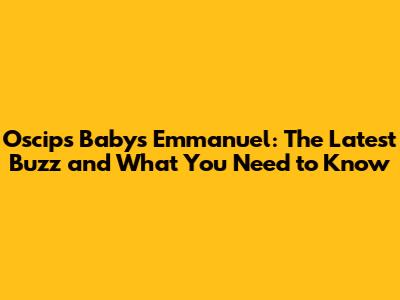 Oscips Babys Emmanuel: Latest News & Updates