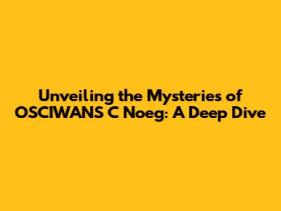 OSCIWANS C Noeg: Unveiling The Secrets
