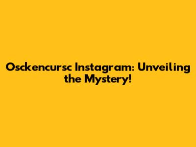 Osckencursc Instagram: Unveiling The Mystery!