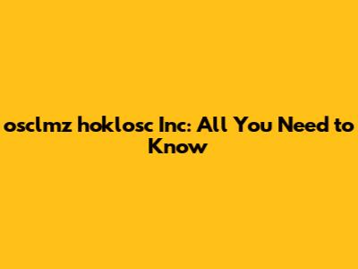 Osclmz Hoklosc Inc: All You Need To Know