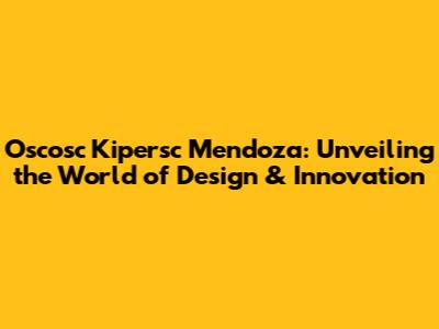 Oscosc Kipersc Mendoza: Unveiling The World Of Design & Innovation