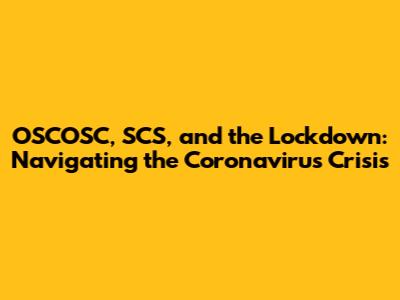 OSCOSC, SCS, And The Lockdown: Navigating The Coronavirus Crisis