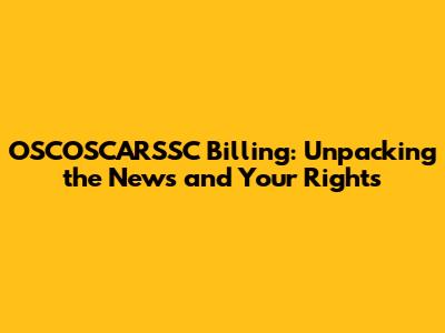 OSCOSCARSSC Billing: What You Need To Know