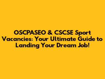 OSCPASEO & CSCSE Sport Vacancies: Find Your Dream Role!