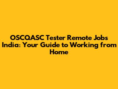 OSCQASC Tester Remote Jobs In India: Your Guide To Working From Home