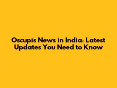 Oscupis News In India: Latest Updates