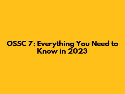 OSSC 7: Everything You Need To Know In 2023