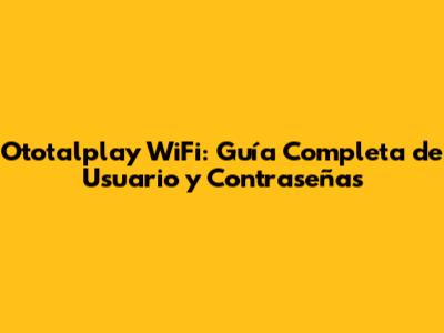 Ototalplay WiFi: Guía Completa De Usuario Y Contraseñas
