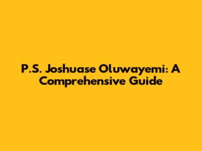 P.S. Joshuase Oluwayemi: A Comprehensive Guide