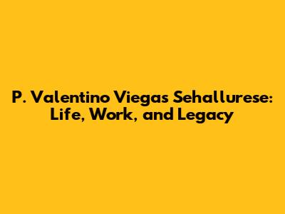 P. Valentino Viegas Sehallurese: Life, Work, And Legacy