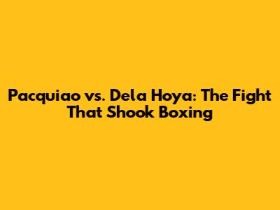 Pacquiao Vs. Dela Hoya: The Fight That Shook Boxing