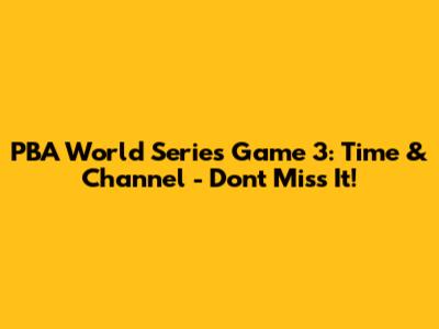 PBA World Series Game 3: Time & Channel - Don't Miss It!