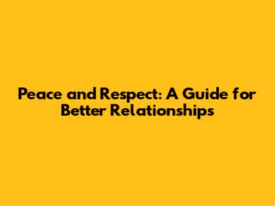 Peace And Respect: A Guide For Better Relationships