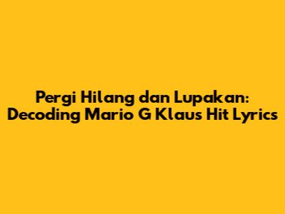 Pergi Hilang Dan Lupakan: Decoding Mario G Klau's Hit Lyrics