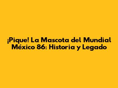 ¡Pique! La Mascota Del Mundial México 86: Historia Y Legado