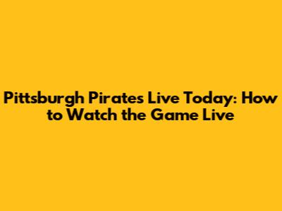 Pirates Game Today: How To Watch Pittsburgh Live