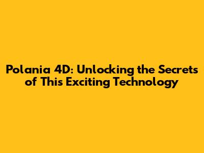 Polania 4D: Unlocking The Secrets Of This Exciting Technology
