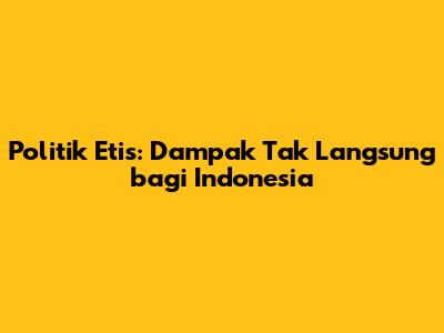 Politik Etis: Dampak Tak Langsung Bagi Indonesia