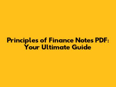 Principles Of Finance Notes PDF: Your Ultimate Guide
