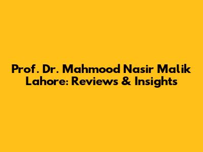 Prof. Dr. Mahmood Nasir Malik Lahore: Reviews & Insights