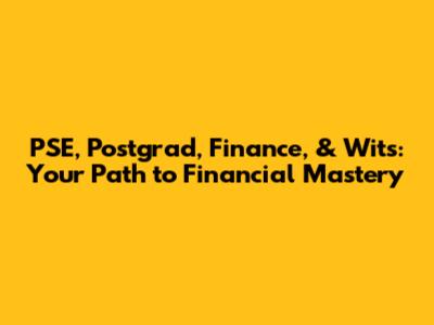 PSE, Postgrad, Finance, & Wits: Your Path To Financial Mastery