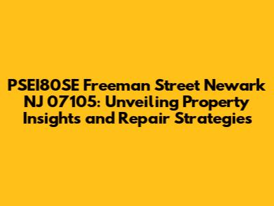 Hey there, property enthusiasts! Let's dive deep into PSEI80SE, located on Freeman Street in Newark, NJ 07105. This isn't just about a random address; we're talking about a potential investment, a place to call home, or maybe even a property you're already familiar with. This guide is your go-to resource, covering everything from understanding the property's potential to actionable repair strategies. So, buckle up, grab your favorite drink, and let's explore the ins and outs of PSEI80SE together!