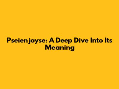 Pseienjoyse: A Deep Dive Into Its Meaning