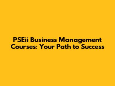 PSEii Business Management Courses: Your Path To Success