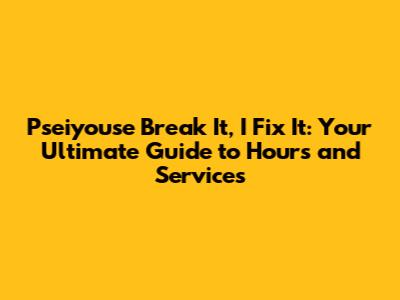 Pseiyouse Break It, I Fix It: Hours & Services Guide