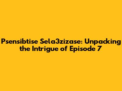 Psensibtise Sela3zizase: A Deep Dive Into Episode 7
