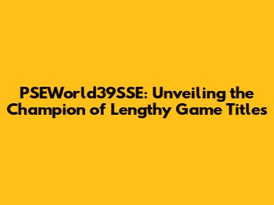 The Genesis of an Epic Name: Understanding PSEWorld39SSE