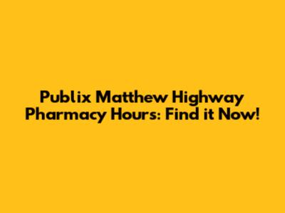 Publix Matthew Hwy Pharmacy Hours: Find It Now!