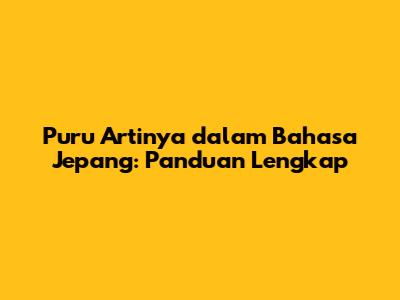 Puru Artinya Dalam Bahasa Jepang: Panduan Lengkap
