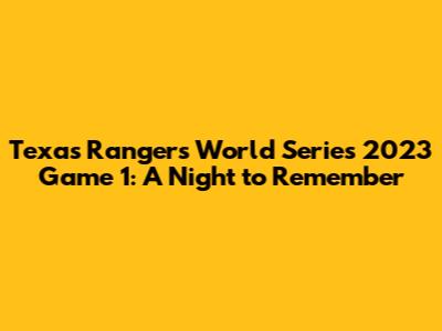 Hey sports fanatics! Let's dive deep into the electrifying Texas Rangers World Series 2023 Game 1! This wasn't just any game; it was a statement. The Rangers stormed into the series, and boy, did they make their presence known. As a huge fan of baseball, I watched every single pitch, every stolen base, and every clutch hit. The atmosphere was electric, the tension was palpable, and the Rangers delivered a performance that'll be etched in the memories of every fan. We're gonna break down everything – the key moments, the standout players, and the strategic masterstrokes that led to the Rangers' triumphant start.