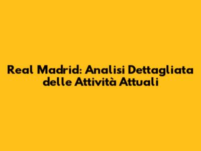 Real Madrid: Analisi Dettagliata Delle Attività Attuali