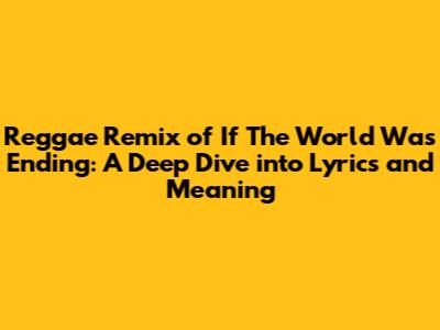 Hey music lovers! Ever gotten chills listening to a song? Well, the Reggae Remix of 'If The World Was Ending' definitely has that power. This article is your ultimate guide, breaking down the lyrics, meaning, and overall vibe of this awesome track. We're diving deep, so get ready to explore the heart and soul of this reggae masterpiece. Let's get this party started, shall we?