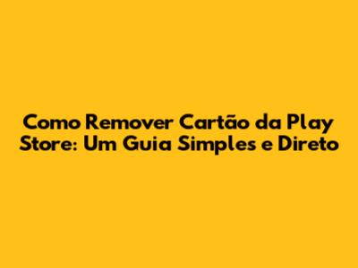 Por Que Remover um CartĂŁo da Play Store?