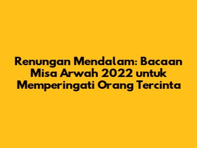 Guys, mari kita selami dunia bacaan Misa Arwah 2022. Ini bukan cuma sekadar ritual, tapi juga momen yang sangat penting buat kita semua, terutama buat mengenang dan mendoakan orang-orang yang kita cintai yang sudah berpulang. Misa Arwah itu seperti waktu khusus buat kita yang masih hidup untuk berkomunikasi dengan mereka yang sudah pergi, menawarkan doa, dan merasakan kedamaian. Tahun 2022 kemarin, banyak banget umat yang merasakan kehilangan, dan Misa Arwah menjadi tempat kita semua berkumpul, bersatu dalam doa, dan berbagi kasih sayang. Kita akan membahas secara mendalam tentang bacaan-bacaan yang dipilih, makna di baliknya, dan bagaimana kita bisa menghayati momen ini dengan lebih dalam lagi. Jadi, siap-siap ya, kita akan menyelami setiap detailnya, mulai dari bacaan pertama, mazmur tanggapan, bacaan kedua, hingga Injil yang dibacakan. Kita akan lihat bagaimana setiap bacaan ini saling berkaitan dan membentuk sebuah kesatuan yang sangat menyentuh hati. Tujuan utama kita adalah agar kita semua bisa merasakan kehadiran mereka yang sudah pergi, merasakan cinta kasih yang tak pernah pudar, dan menemukan kekuatan untuk terus melangkah maju.