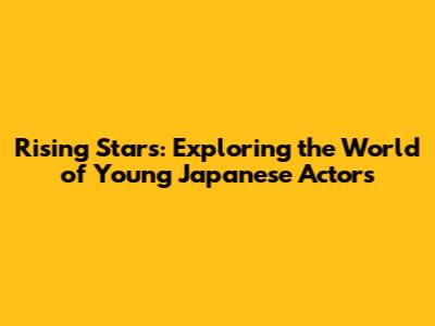 Rising Stars: Exploring The World Of Young Japanese Actors