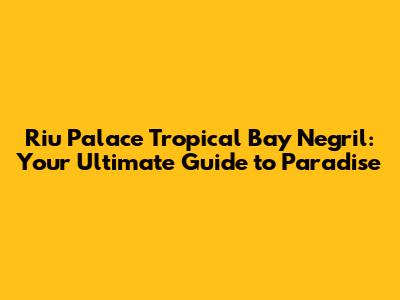 Riu Palace Tropical Bay Negril: Your Ultimate Guide