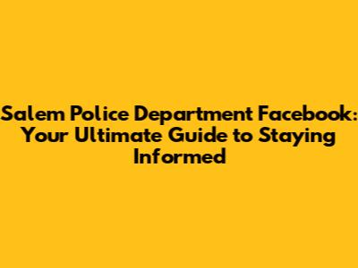 Salem PD Facebook: Your Guide To Staying Informed