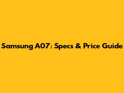 Samsung A07: Specs & Price Guide