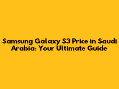Samsung Galaxy S3 Price: A Saudi Arabia Guide